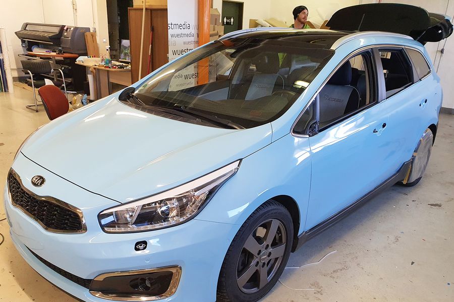 ... wie auch immer Sie es nennen wollen. Bei der Folierung eines Autos werden hauptsächlich die Lackflächen mit einer selbstklebenden Hochleistungsfolie überzogen. Die Folien sind sowohl auf geraden, als auch auf gewölbten Flächen folierbar. Dabei werden die Fahrzeuginnenkanten regulär nicht mit Folie bezogen, sodass beim Öffnen der Türen der Originallack sichtbar wird. Gegen Aufpreis kann dies in den meisten Fällen jedoch auch foliert werden.