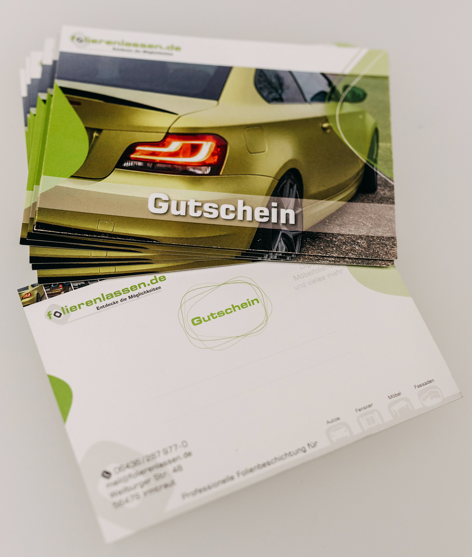 Weitere Informationen erhalten Sie bei uns vor Ort, telefonisch oder per Mail an mail@folierenlassen.de Für individuelle Preisanfragen rufen sie uns gerne an. Gerne stehen wir Ihnen beratend zur Seite!