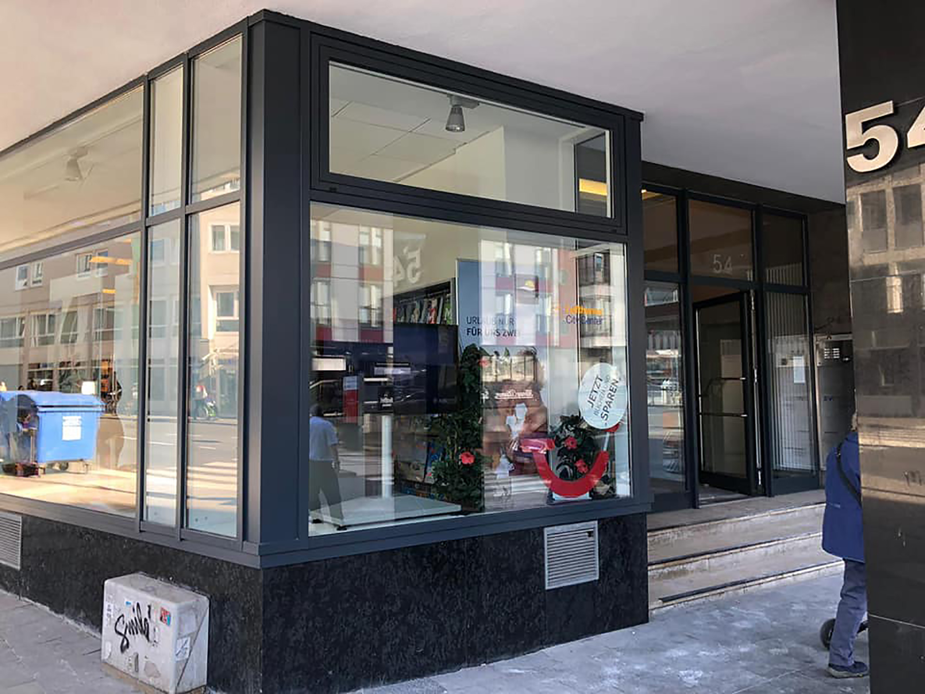 Verblasste Rahmenprofile adé. Im Schein des Kölner Dom´s haben wir die Pfosten-Riegel-Fassade wieder auf Vordermann gebracht.