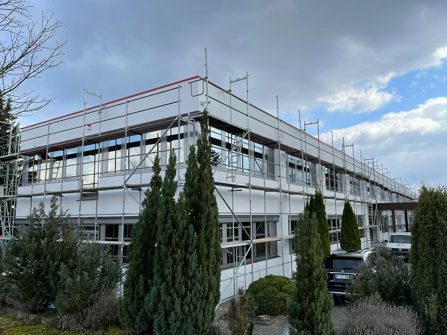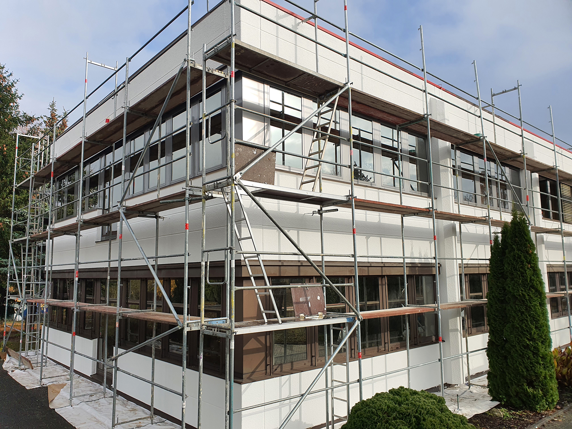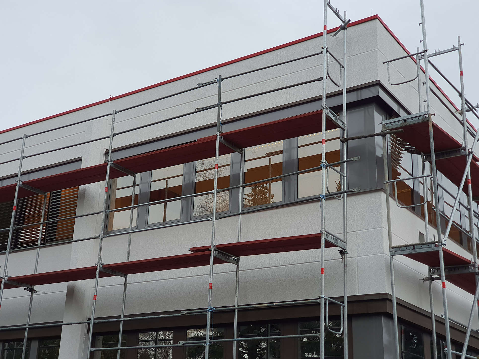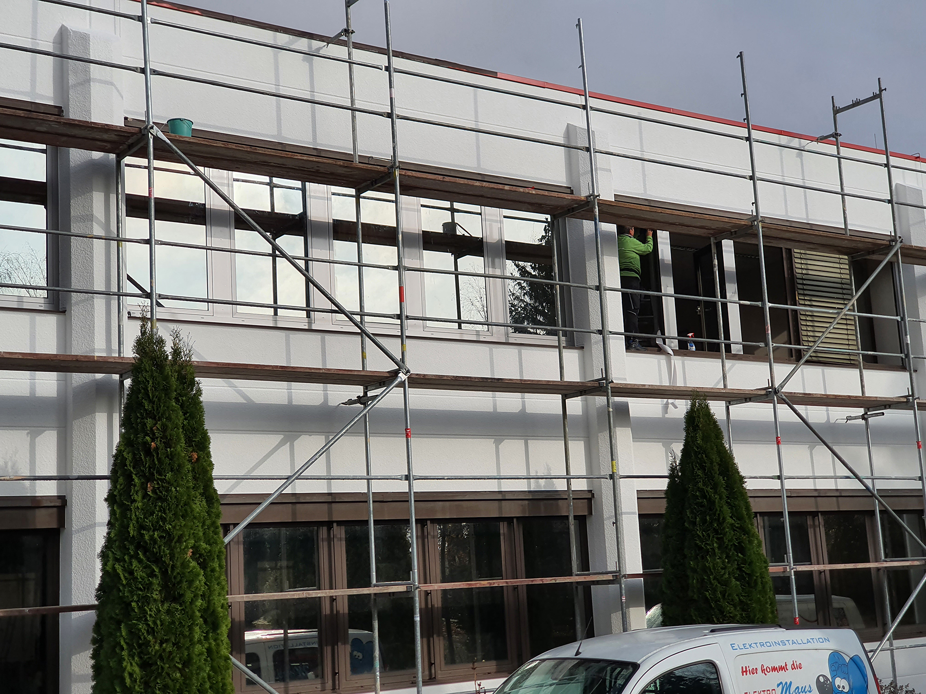 Fenster wo man hinschaut. Wir durften hier über mehrere Wochen in problemloser Abstimmung mit anderen Gewerken die Fensteranlagen des zweistöckigen Bürogebäude zweifarbig umgestalten - mittels Hochleistungsfolie. Fazit: Große Herausforderung, problemlos gemeistert. Vielen Dank für die Zusammenarbeit!