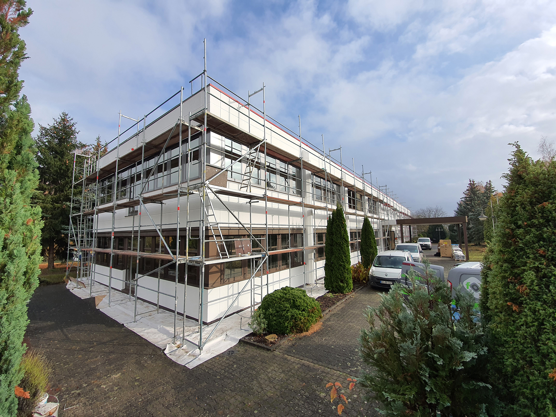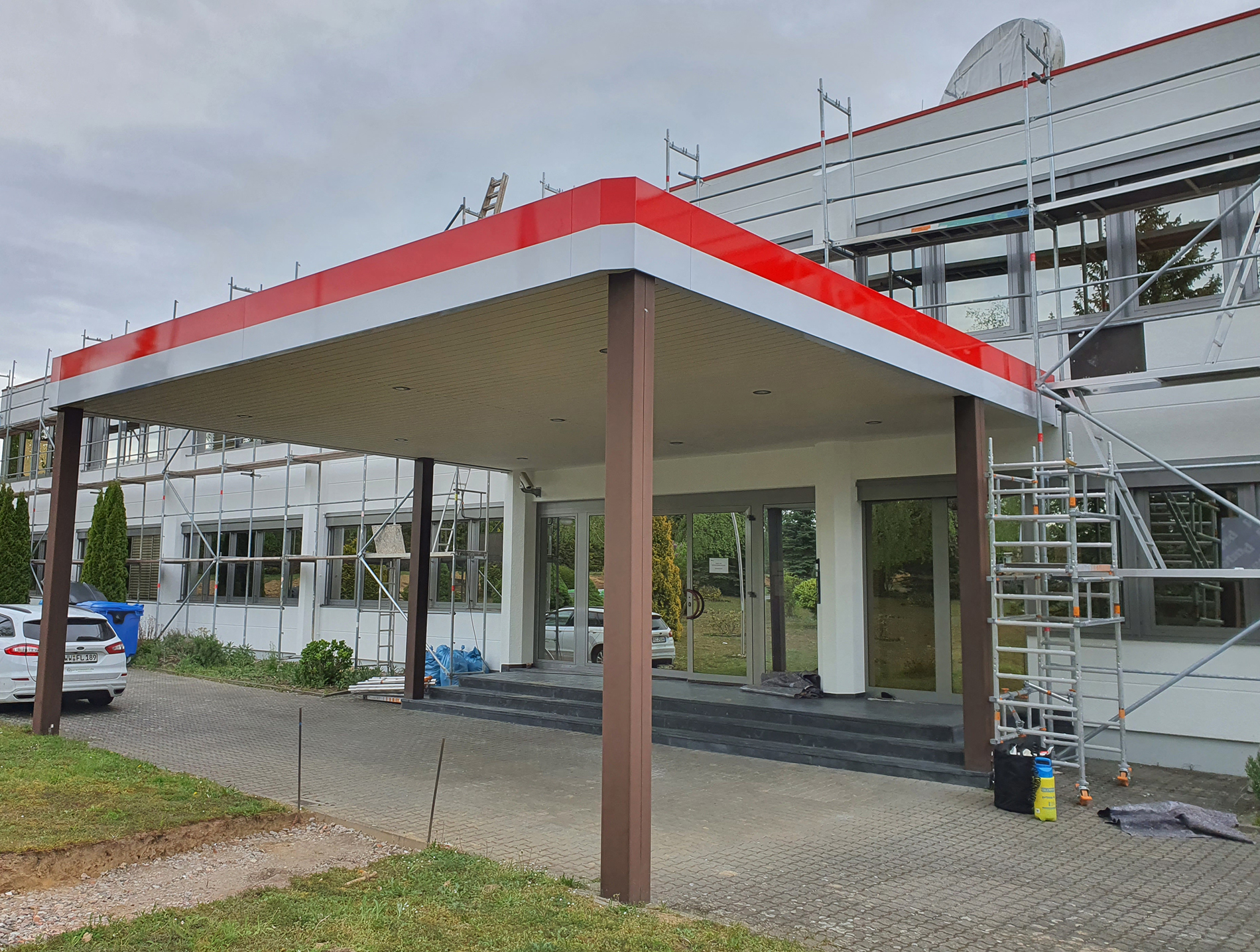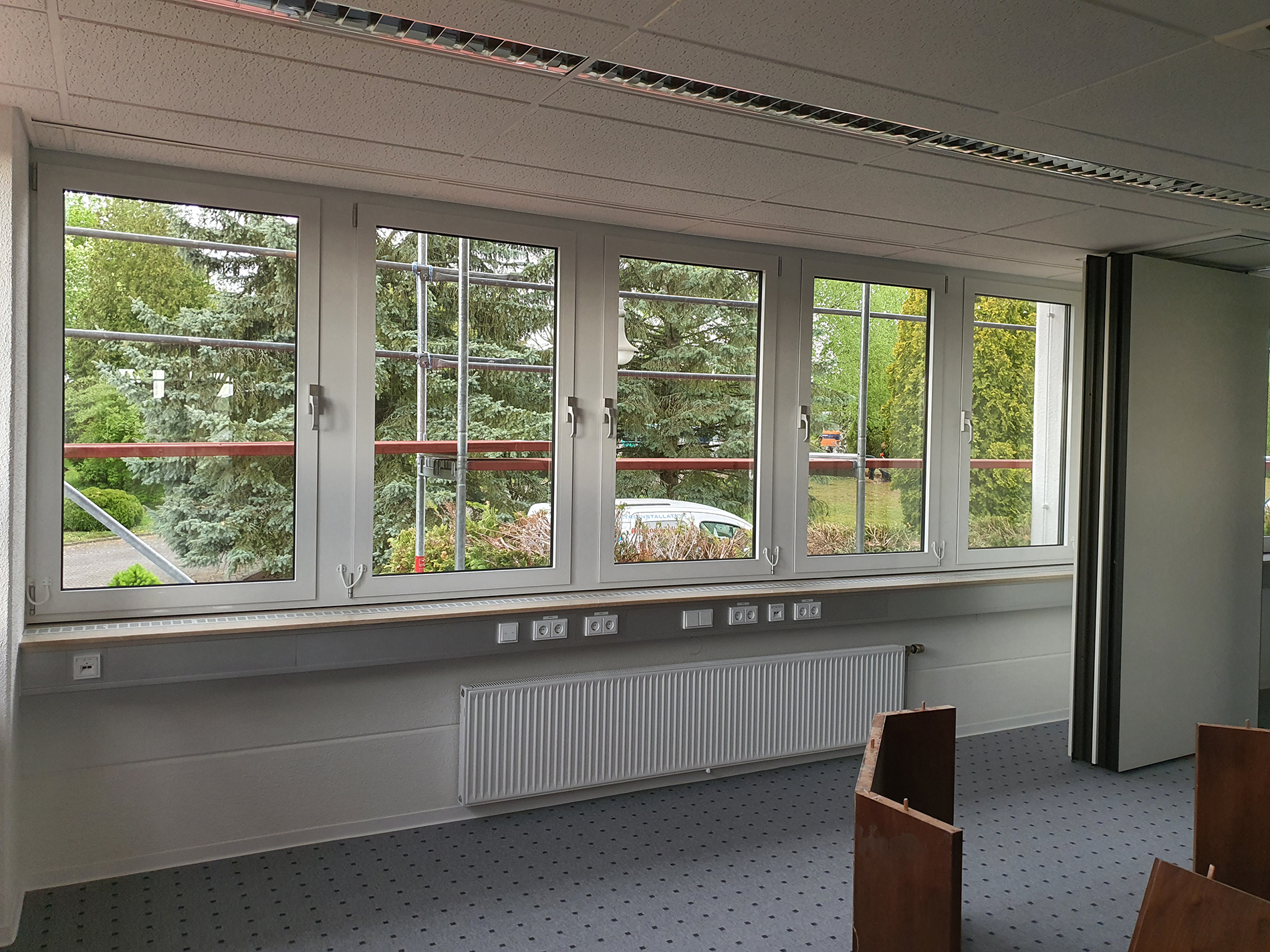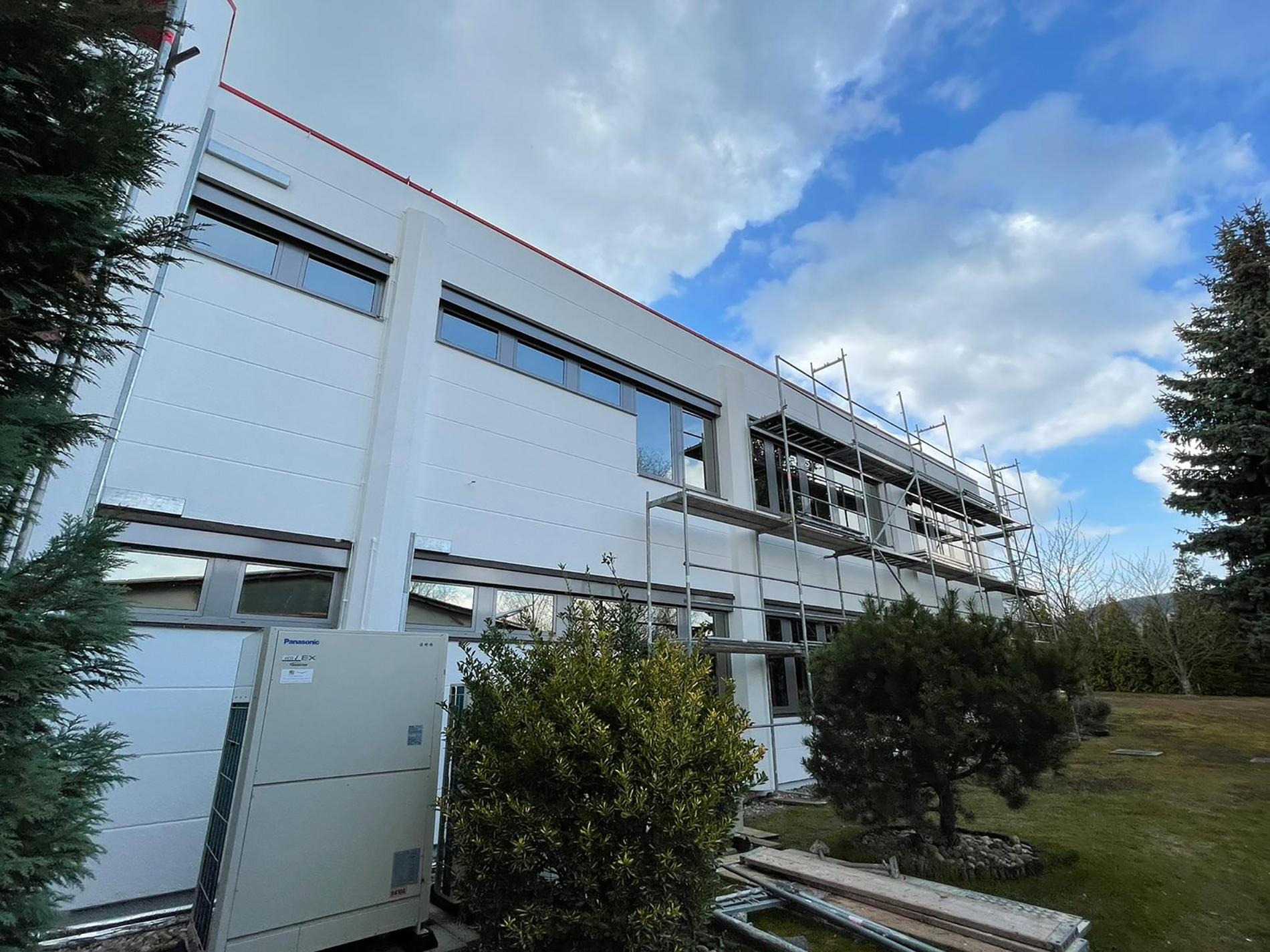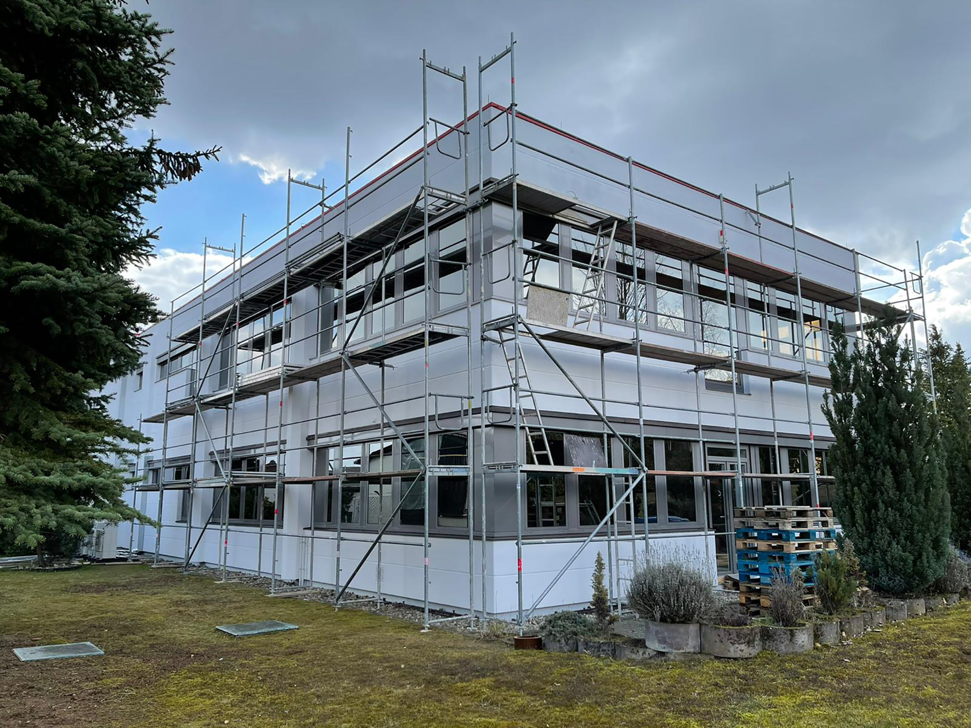 Fenster wo man hinschaut. Wir durften hier über mehrere Wochen in problemloser Abstimmung mit anderen Gewerken die Fensteranlagen des zweistöckigen Bürogebäude zweifarbig umgestalten - mittels Hochleistungsfolie. Fazit: Große Herausforderung, problemlos gemeistert. Vielen Dank für die Zusammenarbeit!