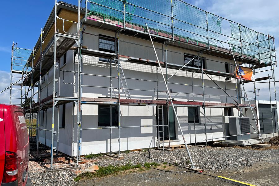 Noch vor dem Fassadenputz erstrahlten die Fenster in Anthrazit und alle konnten wieder ruhig schlafen :-)