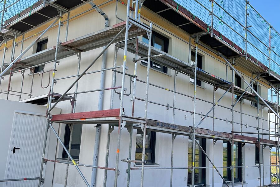 Hier gab es in der Abstimmung seitens der Bauplanung leider Probleme, sodass weiße Fenster statt anthrazitfarbene Elemente eingebaut wurden.